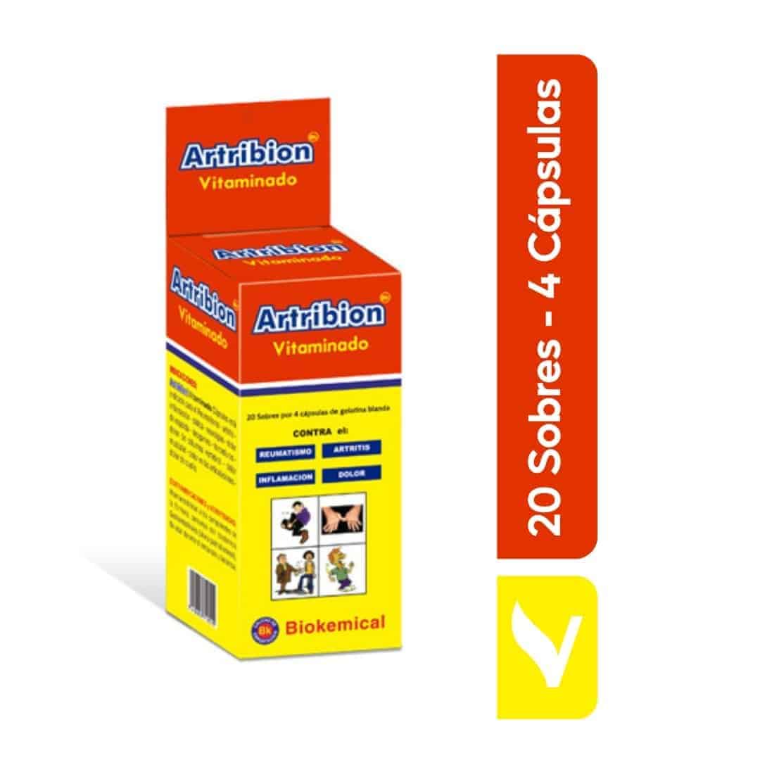 Artribión Vitaminado Son Cápsulas de Gelatina Blanda, que está indicado para el REUMATISMO-ARTRITIS-INFLAMACION-CIATICA-NEURALGIAS-DOLOR DE ESPALDA-DESGARRES-TORCEDURAS-DOLOR DE COLUMNA VERTEBRAL-DOLOR MUSCULAR-DOLOR EN LAS ARTICULACIONES-DOLOR DE NUCA.