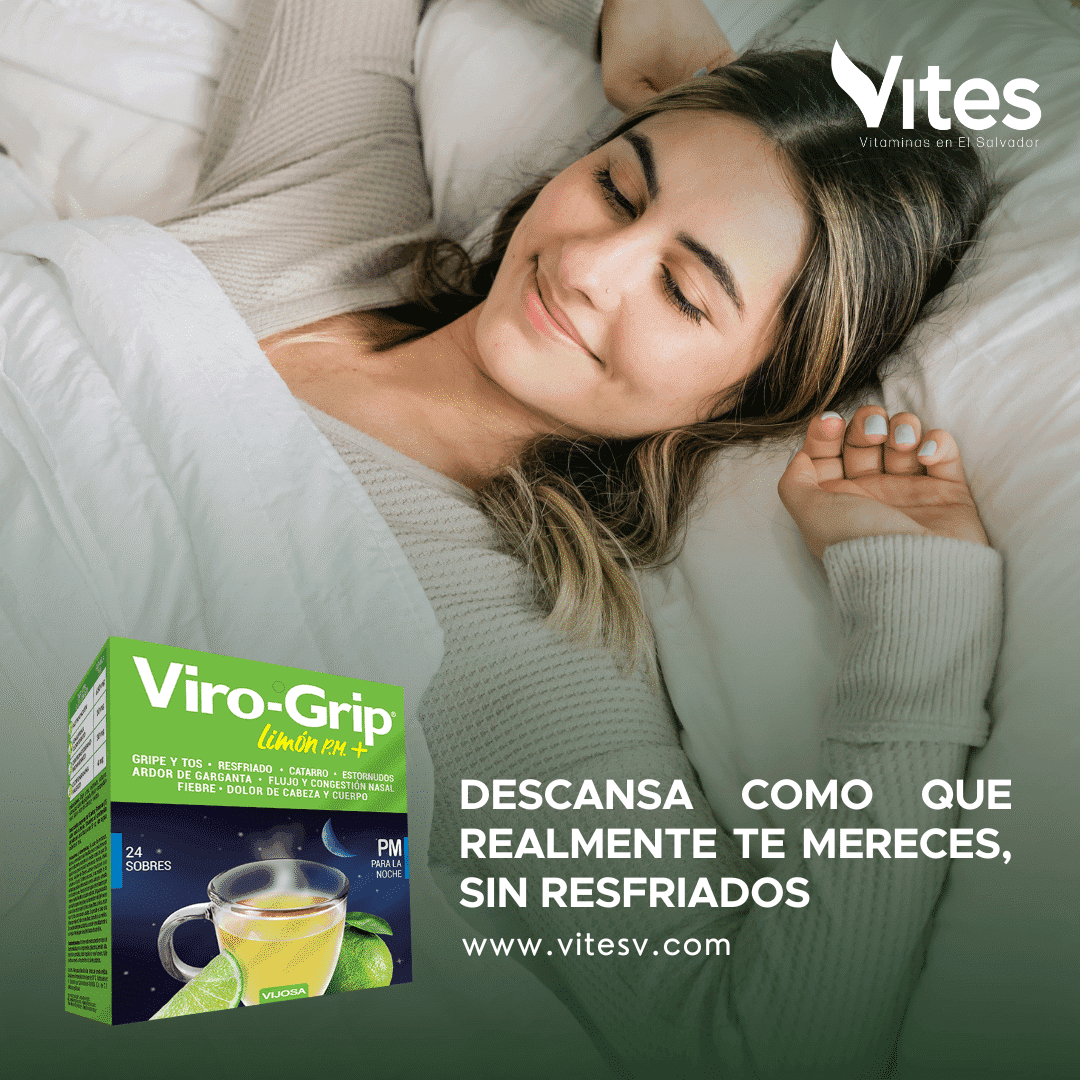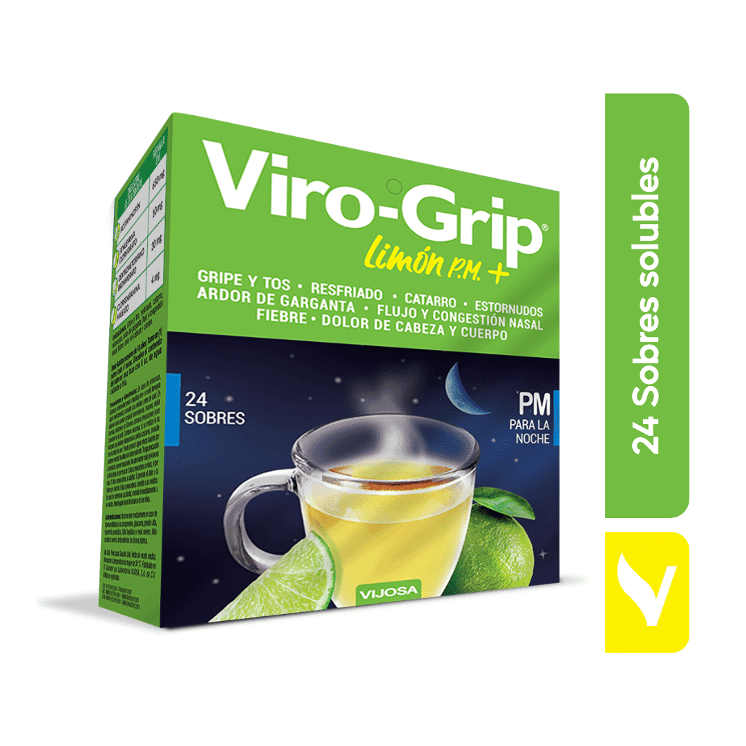 Se recomienda Viro-Grip Limón Fórmula P.M. por la noche ya que le ayuda a conciliar el sueño.